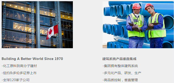加拿大皇家集团创立于1970年,是一家大型跨国集团公司,在高分子复合建材生产领域,从化工原料、配方技术、混料技术,到型材设计、挤出、组装以及相关机械设备和模具的研制等,均有专门的公司和机构从事开发和生产经营。